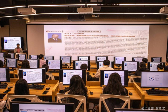 如何发展新质生产力是我国当前及今后经济社会发展的重大命题。冯科教授从历史逻辑、理论逻辑与现实逻辑三个维度分析了发展新质生产力的必要性和依据,通过翔实的历史和现实数据资料以及横向纵向比较分析揭示了发展新质生产力的内在逻辑及其主要内容,并提出了我国如何发展新质生产力的相关建议。冯教授的讲座视野开阔,内容丰富,深入浅出,使师生们获得了关于新质生产力方面的大量信息,收获颇丰。